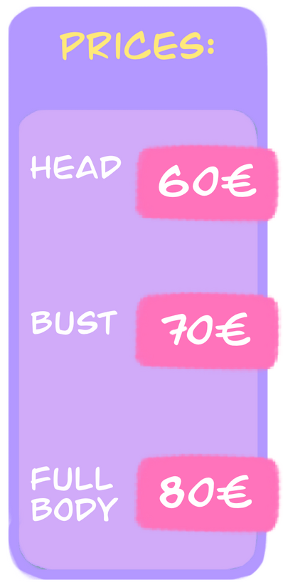 Payment method........................ PaypalComplex character design (featuring accessories, heavily detailed clothing etc.) might cost a little extra